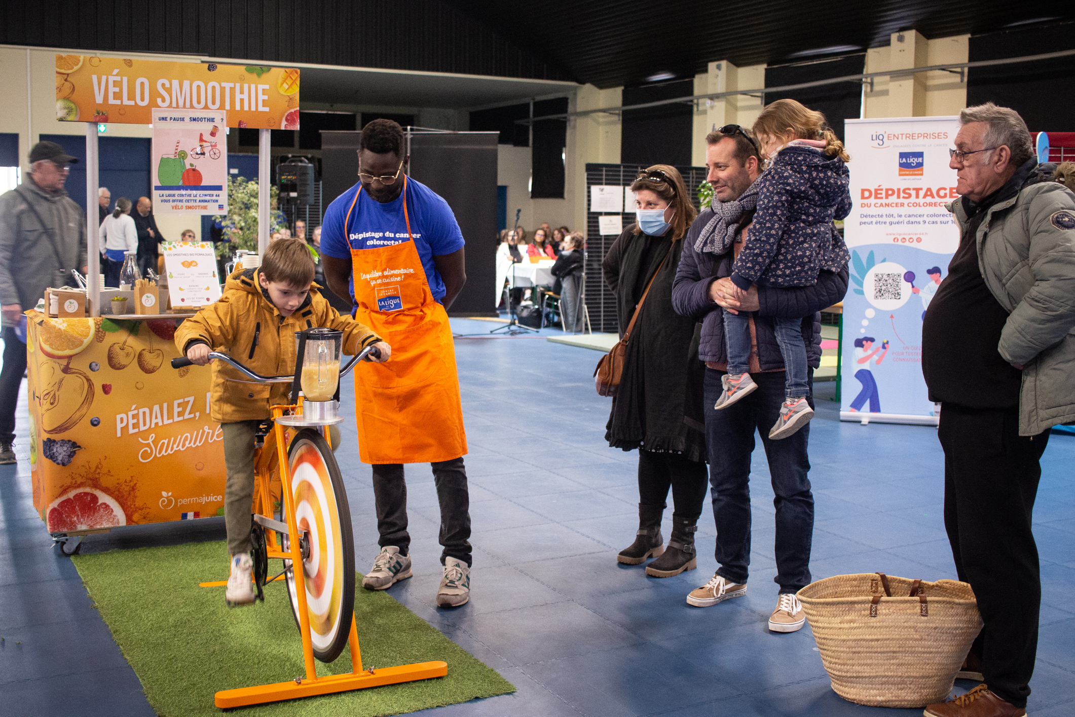 - L’activité physique : pilate, shiatsu, activité physique adaptée (association locale) et animation vélo smoothie (Ligue contre le cancer de Loire-Atlantique).