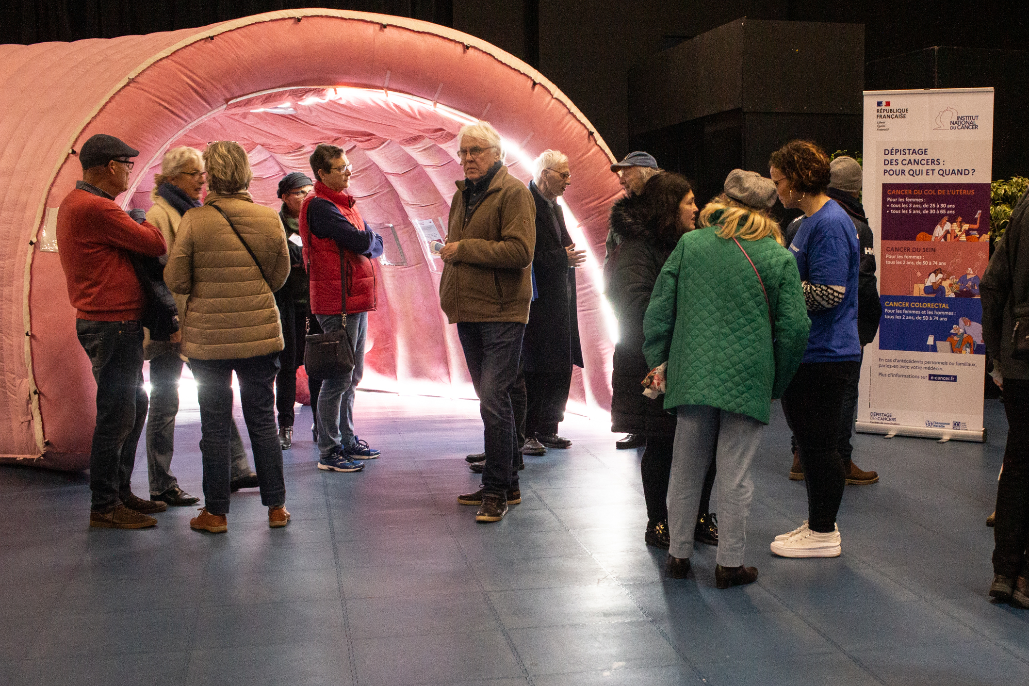 Le Côlon Tour est une structure gonflable de 12 mètres de long, représentant l’intérieur du côlon, proposée par la Ligue contre le cancer. Le public est invité à visiter ce côlon géant pour comprendre comment est fait cet organe et comment se développe le cancer colorectal.